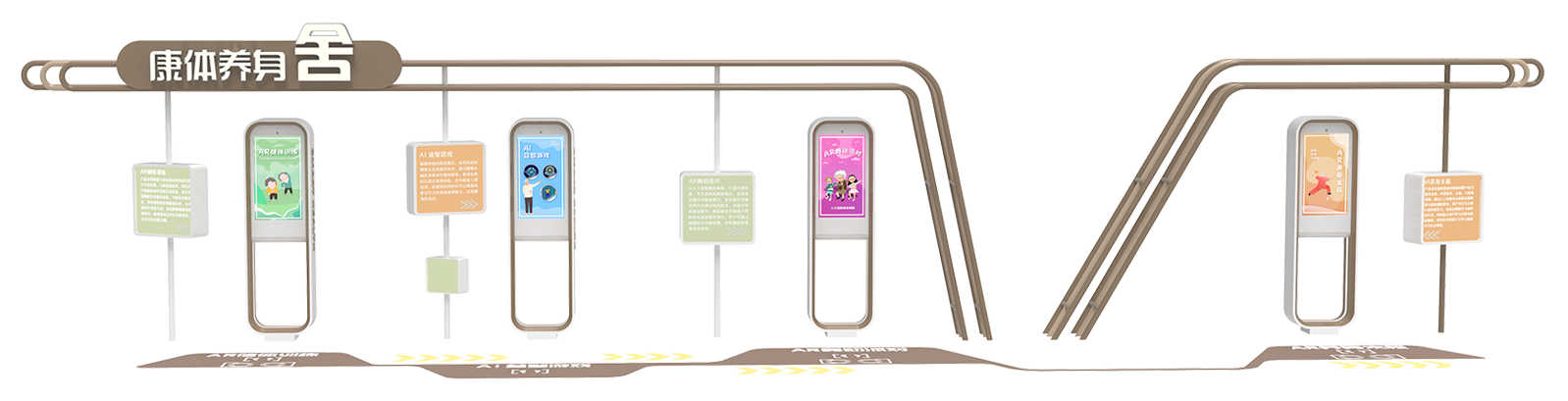 从老年健体和心理需求出发,以人工智能赋能舞蹈,满足老年人运动强身、交友社交的功能需求,通过跟随系统学习运动可以塑身塑型、增强关节灵活性和柔韧度、结交舞伴。产品采用体感互动系统运用体感识别与手势识别、人脸识别技术,通过肢体的切换和动作捕捉进行内容的选择和切换。